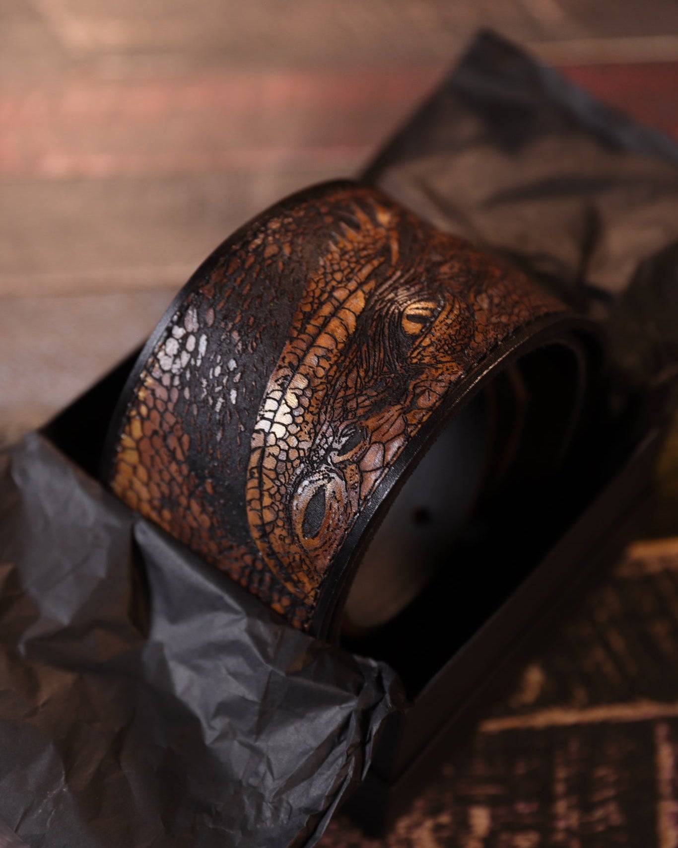 • Signature 3D Dragon: Slighly elevated and hand-painted using my own artistic leather-working technique